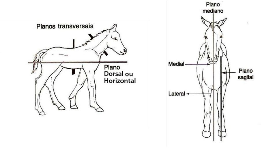 Estruturas mediais encontram-se em direção ao plano mediano que divide o corpo em “metades” simétricas, direita e esquerda. Estruturas laterais encontram-se em direção aos lados (flancos) do animal.