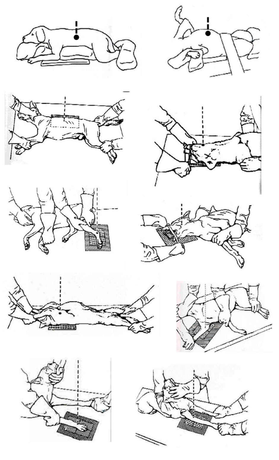 D-V: dorso ventral (feixe de raios incide no dorso e emerge no ventre do animal atingindo o filme).